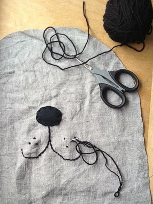 Ich war ein bißchen traurig, als Sam und sein Herrchen wieder abreisten und beschloss deshalb, mir meinen eigenen Sam zu nähen. Einen, der weder haart noch sabbert und für den ich keine Kackebeutel brauche.