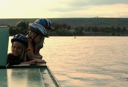 Das jüngste Kind nutzt die Gelegenheit, um in den Rhein zu fallen. Verletzungen trug es nicht davon, doch die nächsten paar Kilometer musste es ohne Hose fahrend bewältigen. Die Hose flatterte und trocknete im Fahrtwind an Frau … äh … Muttis Fahrradkörbchen.