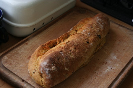 Wenn ich im Garten arbeite, möchte ich so wenig Zeit wie möglich in der Küche verbringen, weswegen die Futteraufnahme zum „draußen essen“ vorbereitet werden sollte. Abends sollte gegrillt werden und für mittags, für zwischendrin, gab es das allerköstlichste Kartoffelbrot, natürlich von Frau Barcomi (gebacken vom besten Vater meiner Kinder, aus eigenen Kartoffeln, mit Kräutern und getrockneten Tomaten):