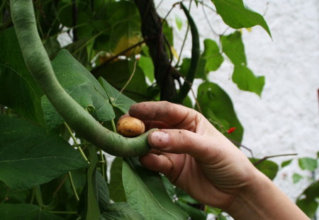 Aber was sind das für Monsterbohnen? *schock* Mutanten? Oder wirkt die nur so groß, weil das daneben gehaltene Stück eine Mini-Zwerg-Kartoffel ist? ;)
