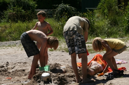 Vielleicht wollten die Jungs die Mädchen auch nur vor der Sonne schützen, als sie sie im Sand verbuddelten (natürlich rächten sich die Mädchen auf gleiche Weise)