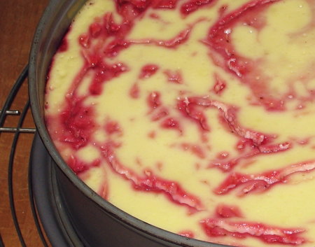 spontane Improvisation mangels ausreichender Himbeerernte: Raspberry-Forrest-Strawberry-Swirl-Cheesecake