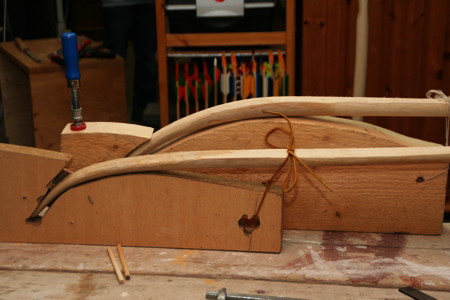 Holz (Rattan) wurde gebogen, vorher allerdings in Form geraspelt und gefeilt: