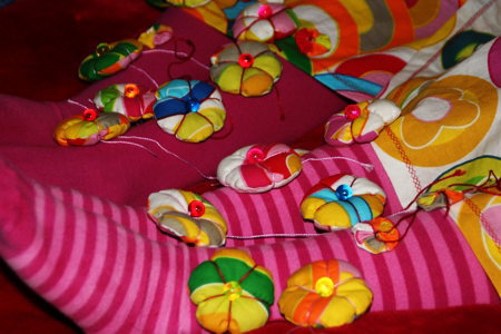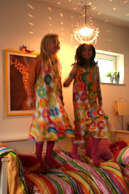 Um zu verhindern, dass sich beide Mädchen in den Schlaf weinen oder – noch viel schlimmer – die ganze Nacht jammern und Frau … äh … Mutti um ihren wohlverdienten Schlaf bringen, durften die Damen die Stoffschubladen durchwühlen. Ein buntes Kostüm sollte es sein, aber bitte nicht kindisch oder albern. Gemütlich bitte und irgendwie auch schick. Und wunderschön. Und mit Blumen. Und glitzern soll es auch. Sofort, bitte.