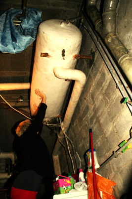 derlei abenteuerliches haben wir in unserer zukünftigen bleibe noch nicht vorgefunden, noch nicht einmal im keller. ach doch: eine abflussleitung, die ausserhalb am mauerwerk nach draussen geführt liegt, und sicher rhytmisch in sich zusammenbricht, wenn das efeu bewegt würde *gacker* ach und im anbau, im schuppen, da sind so räume, die sehen aus, als hätten sie tiefe alte sickergruben unter den holzplanken!!