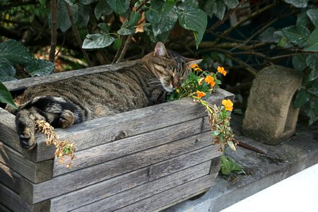 Wunderbar! Der Kater im Blumenkasten ist einfach göttlich!