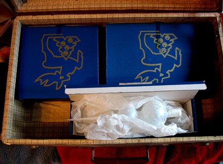 Alle Kugeln sind in Seidenpapier verhüllt in ihre Kisten verstaut worden. Und die wiederum in den alten Koffer. Der liegt jetzt in der Halle hinten rechts auf dem Regal.