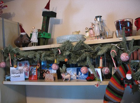 Das Regal über dem Fernseher ist abgeschmückt, kurz bevor erste Nadeln in den Fernseher fallen konnten :) Die wunderschönen Weihnachtsgrüße liegen gebündelt im Nähzimmer (bis auf die Karte aus der Feenwerkstatt, die schreit nämlich „aufhänger, aufhängen!“)