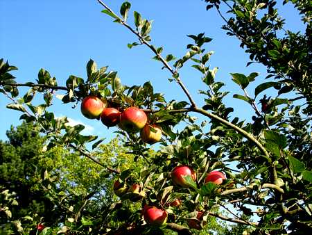 Und noch ein Blick hoch in den Apfelbaum, dorthin, wo die schönsten Äpfel hängen.