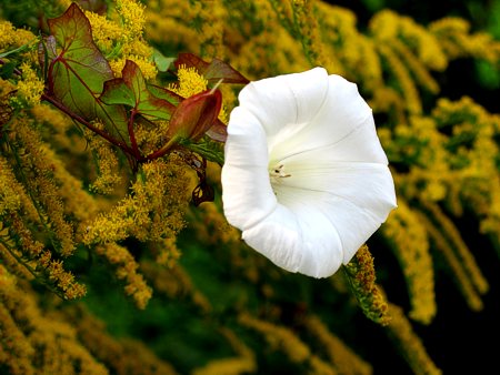 Oder eine Winde. Böses Zeug. Wuchert den ganzen Garten zu, darf sie aber an manchen Stellen.
