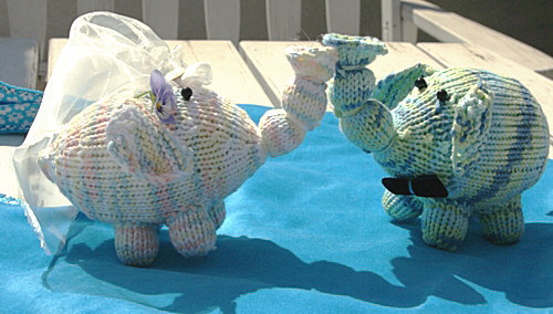 Das Elefantenbrautpaar, komplett mit Schleier und Fliege. Er in türkis, weil die echte Braut mag türkis.