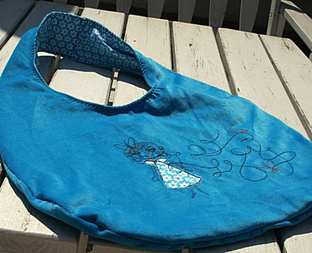 Der Schmetterling auf der Tasche stammt ebenfalls aus Frau Makis Feder und gehört zur Stickdatei.