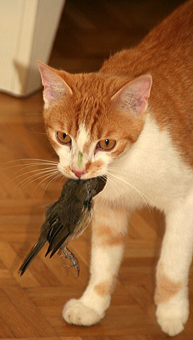 Herr von Sauerstein sagt: „Hallo liebe Frau … äh … Mutti! Weil du mich nicht ausreichend fütterst (schau mal, wie mager ich bin), habe ich eben Beute gemacht. Bin ich ein feiner Kater?“