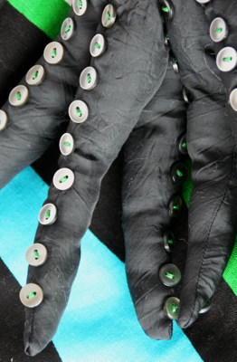 Und hier noch ein kleiner Blick auf Tentakel mit Saugnäpfen. Die Knöpfe sind grau, schimmern aber sehr hell. Ganz normale Wäscheknöpfe, Erbstücke von Oma.