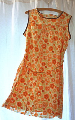 Das Kleid ist noch nicht gesäumt, da ich mich nicht so recht entscheiden kann. Das braune Schrägband von Ärmel- und Halsausschnitt ist klasse, leider hab ich´s aufgebraucht und es regnet und deshalb kann ich nicht los, um Neues zu kaufen. (ausserdem kommen gleich die Kinder und ich sollte kochen statt zu bloggen, aber ach.)