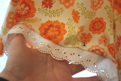 Vielleicht nähe ich diese Spitzenborte mit ein. Ich liebe sie und sie ziert schon einige meiner Röcke. Ausserdem schenkt sie dem recht knappen Kleidchen doch noch ein paar Zentimeter, so dass ich mich evtl. gefahrenfrei bücken kann.