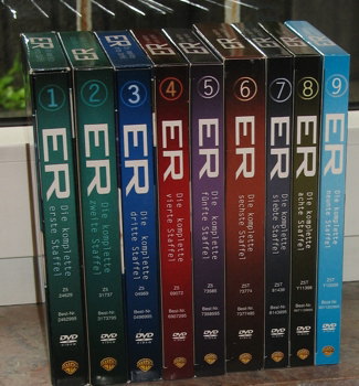 Ich würde ja gerne mal schauen, nur ganz kurz. Nur nachsehen, ob die Scheiben auch in unseren Player passen. Nur fünf Minuten. Staffel 1 habe ich nämlich noch nie gesehen und was sieht der George auf dem Cover JUNG aus! Und Dr. Greene. Ach ja.