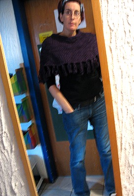 Als ich den Kindelein neulich wärmende Hüllen bei Fit-z bestellte, wühlte ich mich durch das Schnäppchenlager und erstand ausser diesem Rock auch noch so ein Dings. Ein Dings ist ein zu kurz geratener Poncho in lüla, wärmt ganz wunderbar die Schultern ohne den Rest einzuengen. Ein Dings halt.