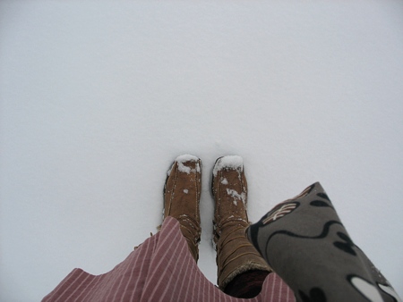 Wir kommen nicht wirklich schnell voran, aber das macht ja auch nix. Und weil ich die Kamera in der Hand habe, kriege ich keine Schneebälle übergeworfen. Das ist gut so. (ich hasse Schnee im Nacken)
