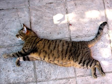 Ich finde, dass er sehr dynamisch da liegt. Wäre ich eine begnadete Bildbearbeitungskünstlerin, würde ich ihn ausschneiden und vor einen anderen Hintergrund montieren, so dass es aussähe, als flöge er voller Grazie … äh … irgendwohin.