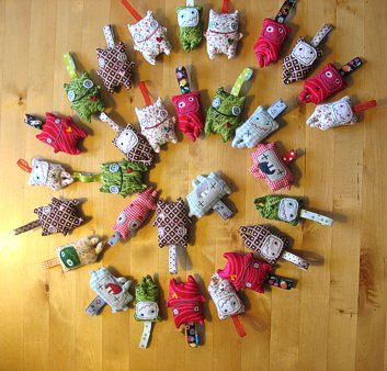 Kurz nochmal zu Monster und Co. Alles, was ich nicht auf dem Weihnachtsmarkt verkaufe, wird am Folgetag hier im Schaufenster landen. Das kündige ich aber rechtzeitig an. VOR dem Weihnachtsmarkt kann ich auf gar keinen Fall etwas verkaufen, sonst ist der Stand zu leer :)
