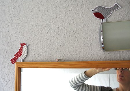 Und diese beiden schmücken den noch unlackierten Spiegel und die Lampe darüber.