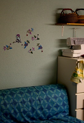 Im Nähzimmer tummeln sich Vögel und eine Eule