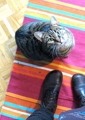 Sowie ich in der Küche Schranktüren öffne, kommt der dicke Martin angeflitzt und teilt mir mit äusserst beredetem Blick mit, dass er ein fast verhungertes, kleines Katzenbaby ist.