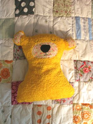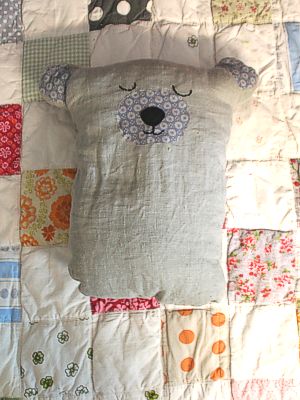 Nun mag es ein bißchen albern erscheinen, einem erwachsenen Menschen ein selbstgenähtes Stofftier zu schenken, doch diese Katze hat genau die richtige Größe, um als Kopfkissen zu dienen. Und da der beste Vater meiner Kinder jeden Morgen zwischen Frühstück und Losgehzeit der Kinder ein Minischläfchen auf dem Sofa hält … genau richtig. (an dieser Stelle bemühen Sie bitte ihre Phantasie: ein großer, bärtiger, attraktiver Mann schläft süß auf seinem Katzenkopfkissen; ein echtes Bild bekommen Sie wohl nie zu sehen.)