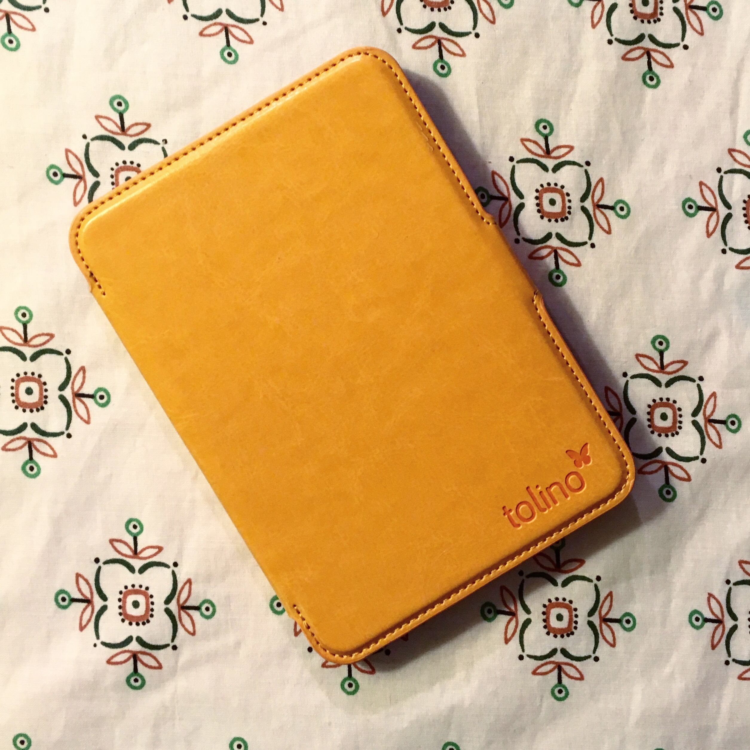 Ein Tolino Vision 4 HD, die quietschgelbe Hülle gab es im Ausverkauf für 5,-€ dazu. Hach.
