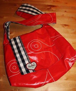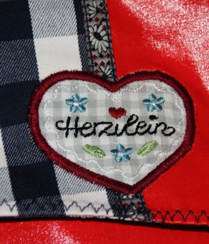 Irritierenderweise gefällt mir die Tasche sehr gut, aber ich hätte sie gerne in einer anderen Farbe. Somit wäre das Täschchen zu haben, fragen Sie einfach nach, falls Sie Interesse haben. Es ist eine große pompadura mit drei Innentaschen, Lacktischdeckenstoff außen, Baumwolle innen und eine herzige Stickerei aus der Feder kreativer Frauen, als Stickdatei umgesetzt von anderen kreativen Frauen und erhältlich im Farbenmix-Shop.